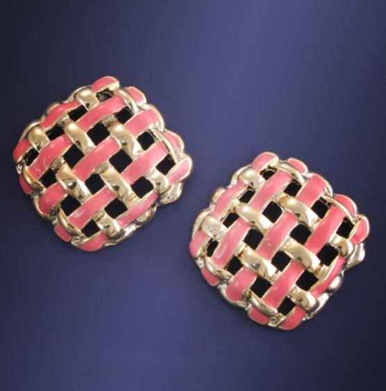 Classy Coral and Gold "Weave" stud earrings. Also a splash of color that is more subtle to add to a vintage ensemble.
