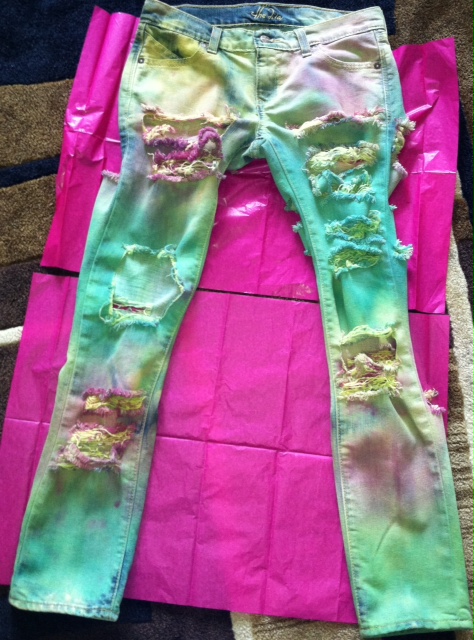 Frayed/Dyed denim jeans