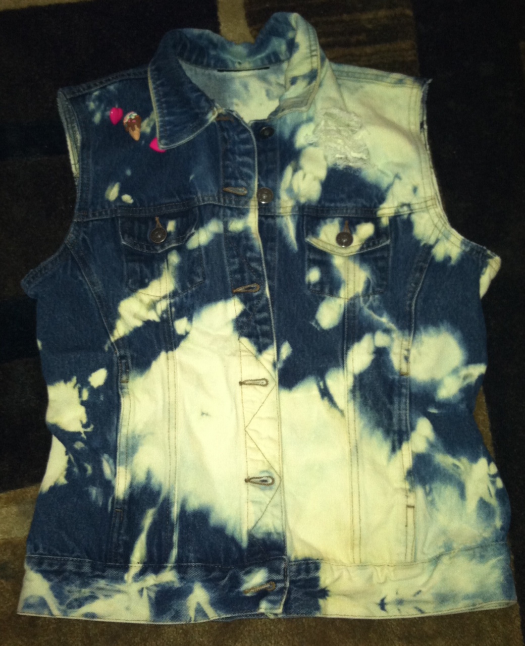 Size Medium Frayed/Acid Wash Vest with Cupcake/Ice Cream button accents