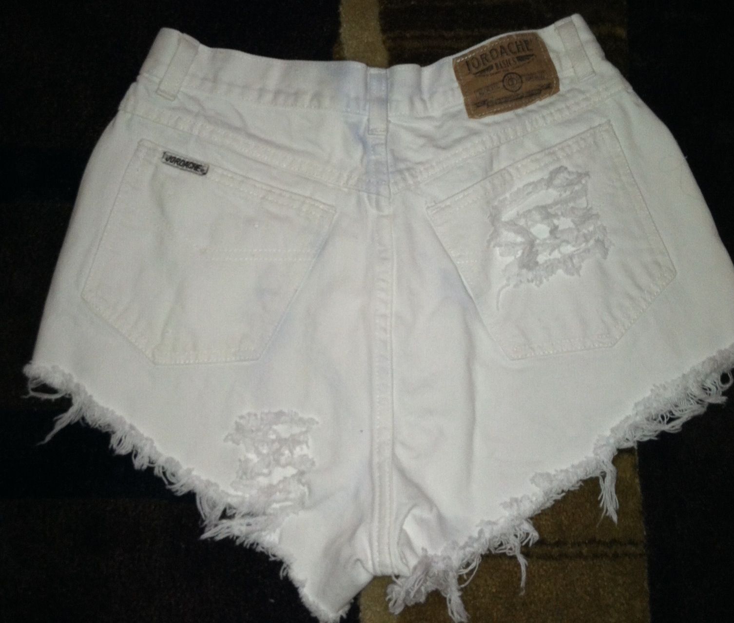 Size 6 Frayed/Studded/American Flag Printed white denim shorts